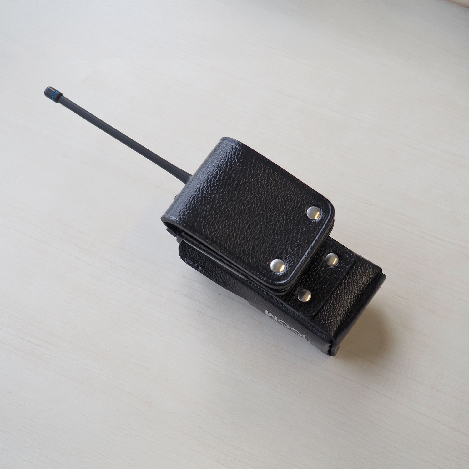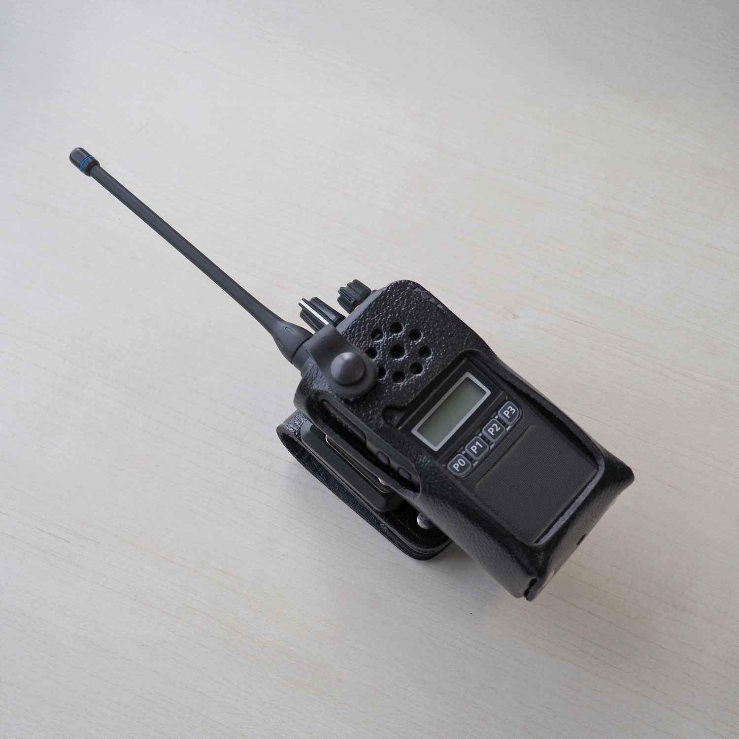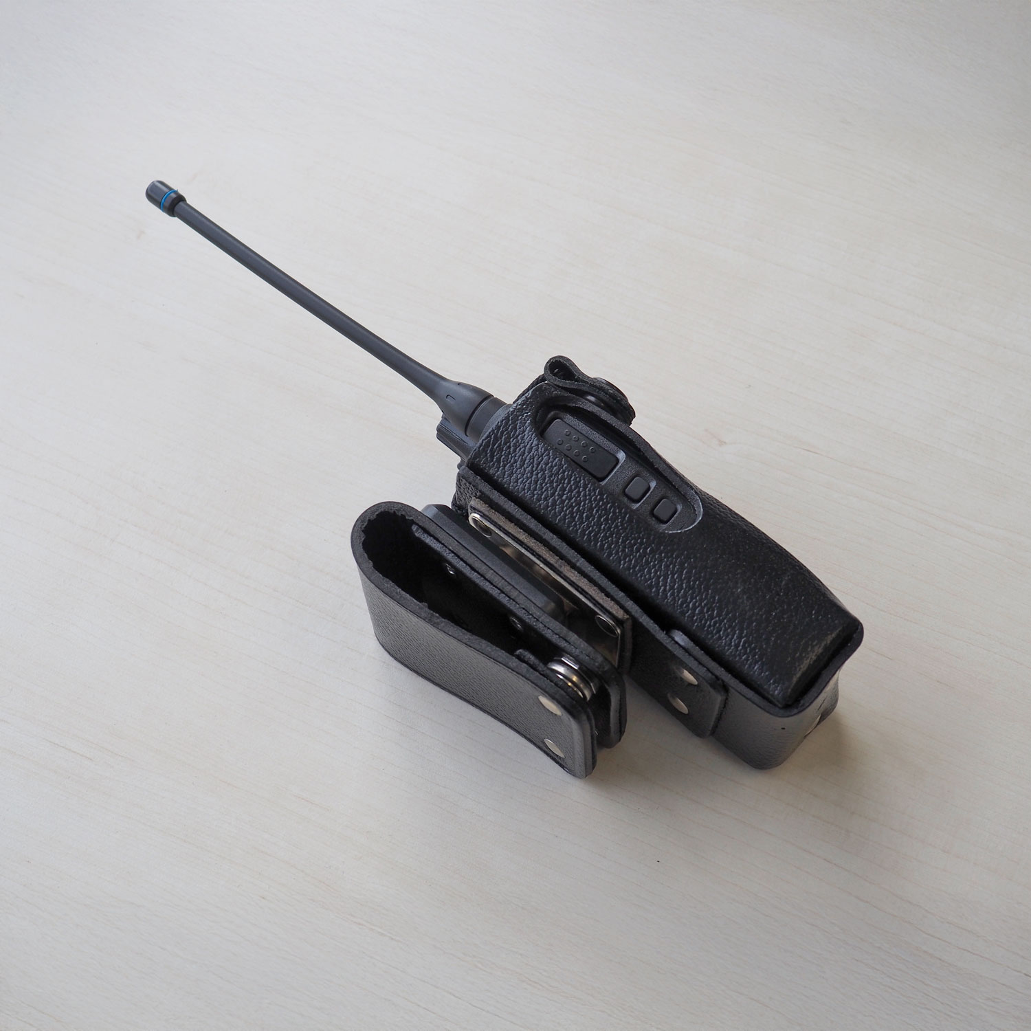 — Black leather case, swivel belt clip, full window